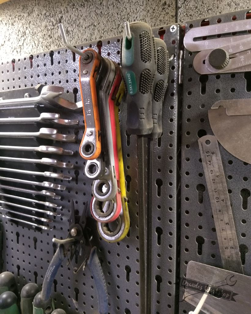 La otra opción es el panel portaherramientas de Kreher, pero los agujeros son de 27mm y no lleva el junquillo para enmarcar los 3 paneles