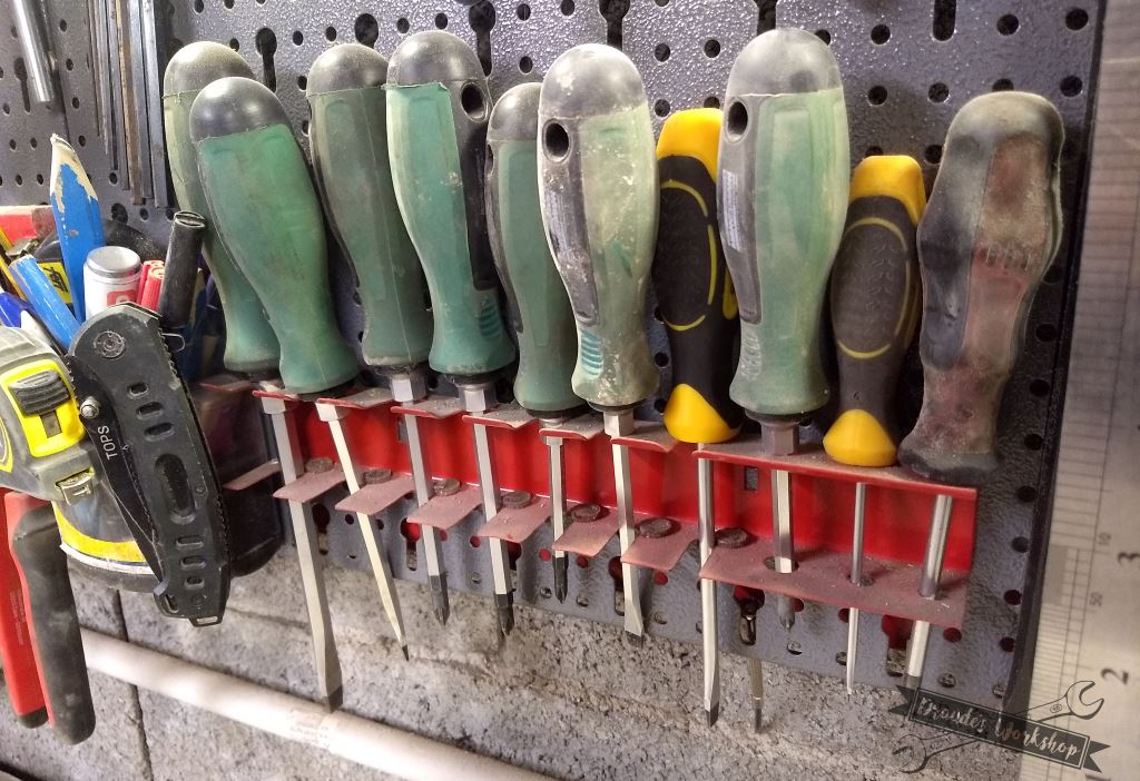 Incluye 14 ganchos, entre ellos hay 2 sujeta destornilladores, 2 soportes de llaves, 1 soporte de martillo, 4 soportes de tenazas, 4 ganchos y 1 portabrocas. Con estos casi podrás colgar toda tu herramienta sin comprar ganchos extra.